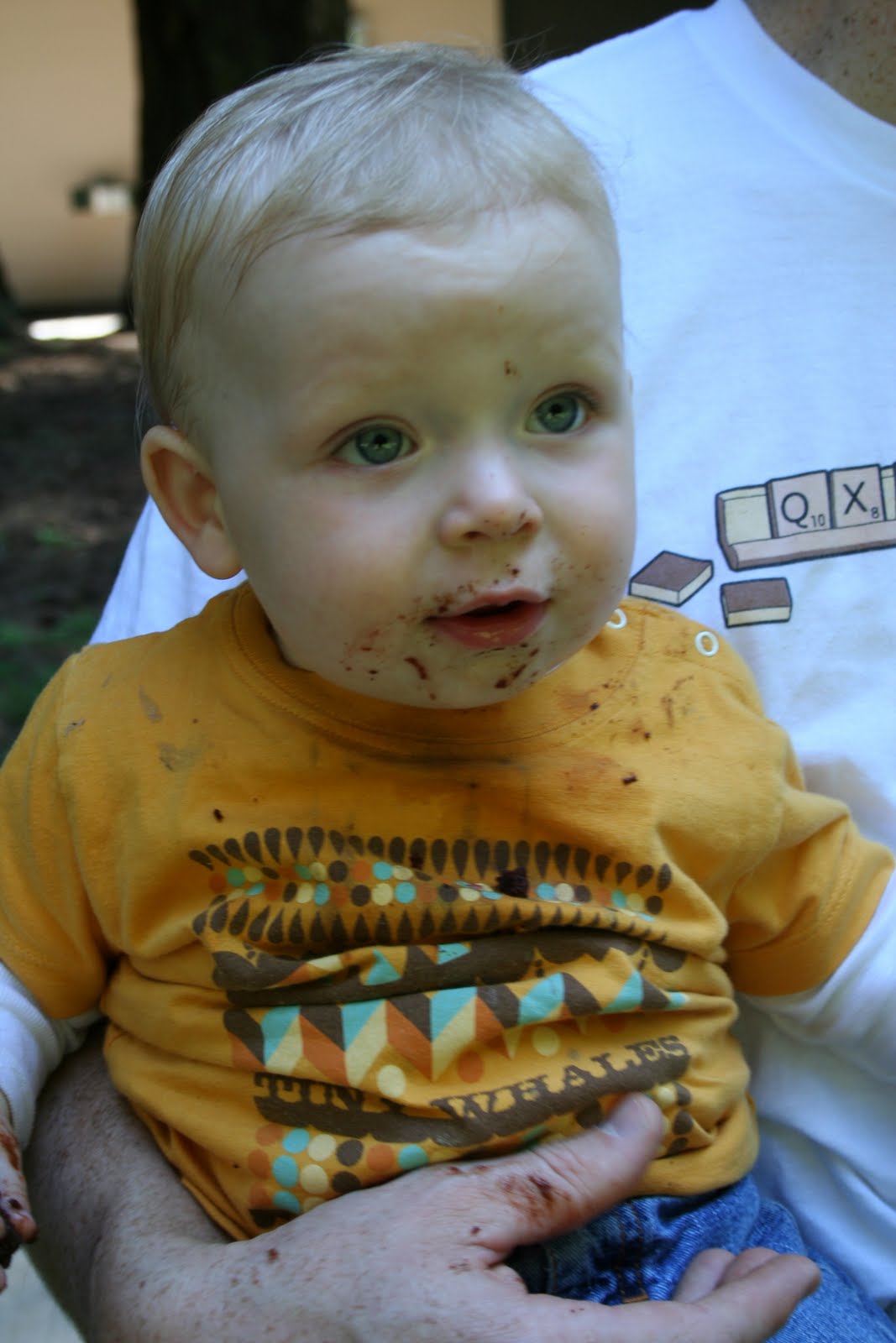 We can't believe our baby is already a 1-year-old. We have been so delighted by him--his sweet, loving, joyful demeanor; his determined, I'm-not-giving-up, nature; his pleasant mix of sociability and independence. He weaned himself cold-turkey at 10 months (to my chagrin). His nickname so far is "Baby Zilla" because he roams the house like a miniature Godzilla looking for things to destroy and devour. We've had to baby-proof cupboards and shelves that Levi was never interested in. Yet he rarely cries (for long at least) and is easily satisfied. He thrives when he's around people (can 'ya tell from the photos?), and yet doesn't have to be the center of attention. It was a pleasure to put him in the spotlight today, however, as we celebrated his first birthday. Happy Birthday, Issac Warren! We love you!
